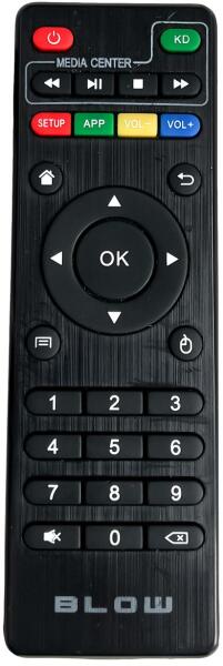 Helyettesítő távirányító BLOW Android 4K TV BOX - 100%-os 1:1 arányú helyettesítője az eredeti távirányítónak. A távirányító a BLOW:ANDROID 4K TV BOX, ANDROID 4KTVBOX. (Előfordulhat, hogy nem minden kompatibilis modell szerepel a listában. Ha nem biztos benne, csak adja meg a készülékmodelljét (online chat-en vagy e-mailben), és mi azonnal ellenőrizzük, if kompatibilis-e