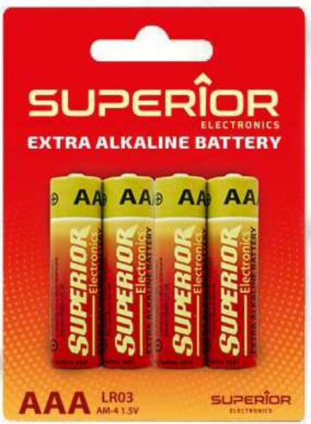 Superior alkáli AAA ("vékony ceruza") elem 4db -os kiszerelésben Általában távirányítókba, fényképezőgépekbe és egyéb elektronikai eszközbe kell a legtöbbször a AAA típusú alkáli elem. Főbb tulajdonságok: 4db kiszerelésben AAA ("vékony ceruza") elem Kiknek ajánljuk? Ha a távirányítódba vagy bármilyen egyéb elektronikai eszközödbe keresel AAA ("vékony" ceruza) ele