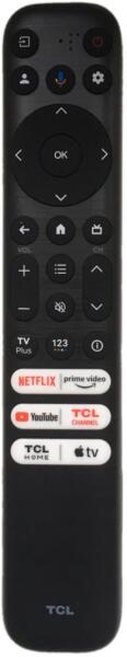 Helyettesítő távirányító TCL 43S450G, 50S450G, 55S450G, 58S450G, 65S450G, 75S450G, 85S450G - 100%-os 1:1 arányú helyettesítője az eredeti távirányítónak. A távirányító a TCL:43S446, 50S446, 50S546, 55R646, 55S446, 55S546, 65R646, 65S446, 65S546, 75R646, 75S446, 75S546, 85S446. (Előfordulhat, hogy nem minden kompatibilis modell szerepel a listában. Ha nem biztos benne, csak adja