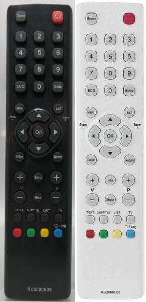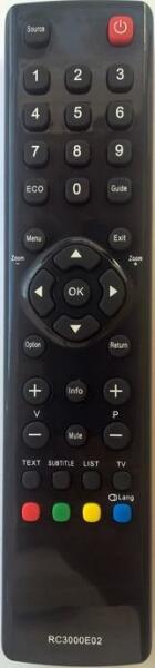 Vadonatúj helyettesítő távirányító ECG RC3000E01, RC3000E02. A távirányító a ECG:24FS4266C, 32LED631PVR. (Előfordulhat, hogy nem minden kompatibilis modell szerepel a listában. Ha nem biztos benne, csak adja meg a készülékmodelljét (online chat-en vagy e-mailben), és mi azonnal ellenőrizzük, if kompatibilis-e az Ön készülékével. Az ellenőrzött kompatibilitást mi garant
