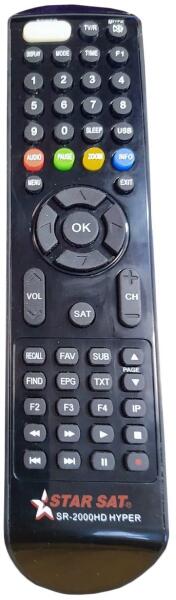 Az eredeti 1:1 arányú duplikátuma távirányító STARSAT SR-2000HD, ACE , HYPER, SR-13000HD (SR2000HD, ACE , HYPER, SR13000HD). A távirányító a STARSAT:ACE, HYPER, SR-13000HD, SR-2000 HD, SR-2000HD, SR-2000HD ACE, SR2000HD, SR2000HD HYPER. (Előfordulhat, hogy nem minden kompatibilis modell szerepel a listában. Ha nem biztos benne, csak adja meg a készülékmodelljét (online chat-en vag