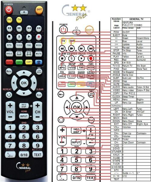 Helyettesítő távirányító VENTURER PVS-21177, LV-91186CE15 (PVS21177, LV91186CE15) - 100%-os 1:1 arányú helyettesítője az eredeti távirányítónak. A távirányító a VENTURER:LV-91186CE15, LV91186CE15, PVS-21177, PVS21177. (Előfordulhat, hogy nem minden kompatibilis modell szerepel a listában. Ha nem biztos benne, csak adja meg a készülékmodelljét (online chat-en vagy e-mailben)