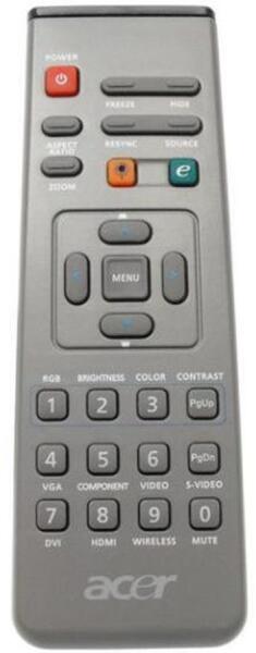 Helyettesítő távirányító ACER VZ. J5300.002 (VZ. K2300.001) - 100%-os 1:1 arányú helyettesítője az eredeti távirányítónak. A távirányító a ACER:P1165, P1165E, P1265, P1303, P5260E, P5270, P5270R, P5280, P5280R, P5370W, P5370WR, P5390W, S1200. (Előfordulhat, hogy nem minden kompatibilis modell szerepel a listában. Ha nem biztos benne, csak adja meg a készülékmodelljét (onlin