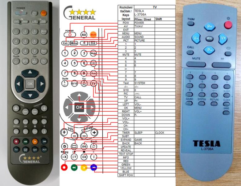 Helyettesítő távirányító TESLA L-3706A (L3706A) - 100%-os 1:1 arányú helyettesítője az eredeti távirányítónak. A távirányító a TESLA:L-3706A. (Előfordulhat, hogy nem minden kompatibilis modell szerepel a listában. Ha nem biztos benne, csak adja meg a készülékmodelljét (online chat-en vagy e-mailben), és mi azonnal ellenőrizzük, if kompatibilis-e az Ön készülékével.
