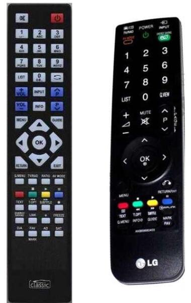Vadonatúj helyettesítője ennek a távirányítónak LG AKB69680403, AKB69680405, AKB69680438. A távirányító a LG:19LD320, 19LH2000, 22LD320, 22LH2000, 22LH201, 22LH250C, 26LD320, 26LG3100, 26LH2000, 26LH201, 26LH2010, 26LH201C, 26LH250C, 32LD320, 32LF2500, 32LF2510, 32LG2100, 32LH2000, 32LH201, 32LH2010, 32LH202C, 32LH20D, 32LH250, 32LH250C, 32LH3000, 32LH301, 32LH3800, 37LF2500, 37LF2510,