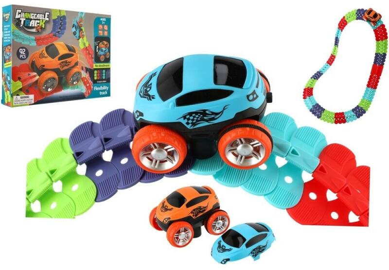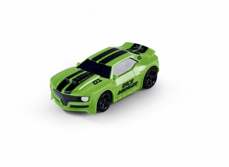 Az egyedi, rugalmas alkatrészekből álló versenypálya bármilyen színkombinációban könnyen összekapcsolható, és lehetővé teszi a pálya hajlását, kanyarodását. A csomagban talál egy játékautót, ami világít és pályán halad. A játékautó szétválasztható kabinnal rendelkezik, így egy ideig narancssárga, egy ideig kék autó is lehet. 3x AAA elemmel, mely nem tartozék