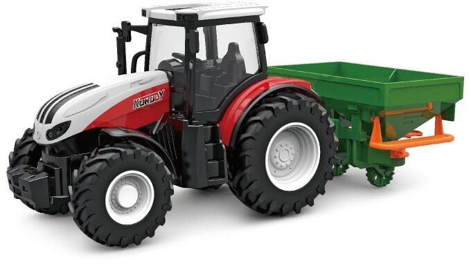 Távirányítós traktor trágyaszóróvalEz a távirányítós traktor remek szórakozást nyújt azok számára, akik szeretik a mezőgazdasági gépeket és a különleges távirányítós játékokat. A traktorhoz egy trágyaszórót is találsz a csomagban. Minden irányban vezérelhető, és a lámpák is működtethetők a távirányító segítségével. A trágyaszóró kézzel mozgathat