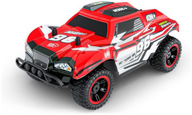 Jellemzők: Terep RC játék gyerekeknek Nincoracers ION+ 1:18 méretarányban, közel 27 cm hosszúsággal, a Rövid pálya kategóriába tartozik. Nagyobb méreteinek köszönhetően a modell könnyen átvészeli az egyenetlen terepet. Elöl védő lökhárítóval van felszerelve. A nagy kerekek rugós lengéscsillapítókkal kombinálva tökéletesen követik a terepet. A test tartós műanyag