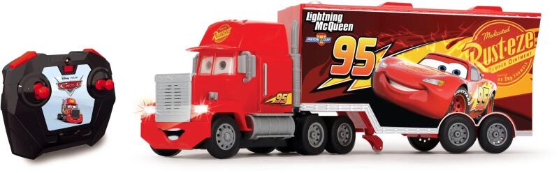 Távirányító Mack teherautó az Autók című filmből. 3 csatorna, fény, hang és turbó. Az utánfutó távirányítóval leválasztható. A hátsó ajtó mechanikusan nyílik. Frekvencia 2,4 GHz. Méretarány 1:24. Hossza 46 cm. Gyermekeknek 5 éves kortól