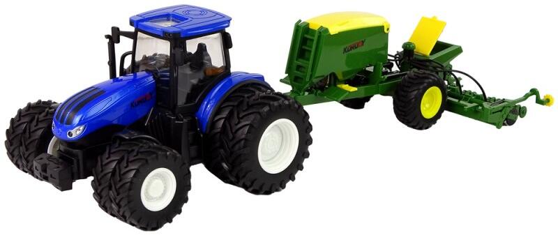 Kék színű távirányítós traktor vetőgéppelEz a távirányítós traktor remek szórakozást nyújt azok számára, akik szeretik a mezőgazdasági gépeket és a különleges távirányítós játékokat. A traktorhoz egy vetőgépet is találsz a csomagban. Minden irányban vezérelhető, és a lámpák is működtethetők a távirányító segítségével. A vetőgép kézzel mozgatható