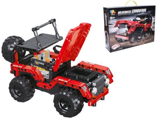 RC off-road autós készlet távirányítóhoz. 277 alkatrészt tartalmaz. Az autó méretei 23x13,5x11,5 cm. Frekvencia 2,4 GHz. Autó akkumulátor csomag 3,7V, vezérlő 2xAA elem nem tartozék. USB kábel mellékelve. BE/KI kapcsoló az autó alján, BE/KI gomb a vezérlőn. Kor. 8+