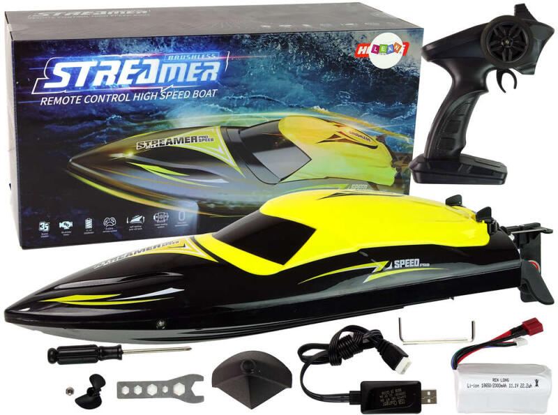 Motorcsónak R/C 2.4G Sárga 35 KM/H Ez egy játék, amely elvezeti Önt a dinamikus vízi szórakozás világába! Valósághű megjelenésének köszönhetően a felhasználók igazi kapitánynak érezhetik magukat. A készletben található akkumulátorral felszerelt motorcsónak készen áll egy izgalmas utazásra. A kaland elindításához csak vegye le a fedelet a felső részről, és helye
