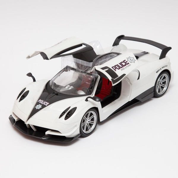 Rendőrségi autó kormánykerék alakú távirányítóval, fényekkel és hangokkal, nyitható ajtókkal, 5 éves kortól, 1:12, fehér színben. A rendőrségi autó kormánykerék alakú távirányítóval ideális játék a kalandot és a szerepjátékot kedvelő gyermekek számára! Ez az 1:12 méretarányú rendőrautó valósághű fényekkel és hangokkal van felszerelve, amelyek fokozzá