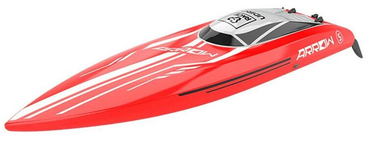 UDIRC 005 Brushless MuscleboatAz UDI Arrow Muscleboat a nagy teljesítményű fröccsöntött hajótestet és a legújabb elektronikát ötvözi, hogy könnyen irányítható távirányítós motorcsónakot hozzon létre lenyűgöző teljesítménnyel. A sebessége pedig a 3 cellás Lipo akksinak és a Brushless motornak köszönhetően akár az 50 km/h-t is elérheti. Az RTR (Ready to Run) csomag