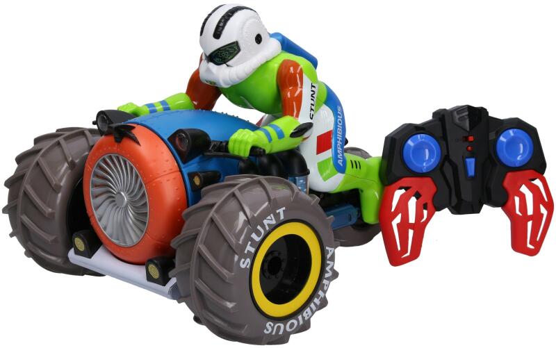 Motorkerékpár tricikli RC távirányítóhoz. Mérete 26 x 24 x 20 cm. 2,4 GHz-es frekvencia. Fényhatások. Terepjáró kaszkadőr motorkerékpár, amely képes vízben közlekedni, gyors 360 °-os fordulatokkal és különféle fordulatokkal. A csomag tartalmaz egy USB töltőt és egy csavarhúzót.