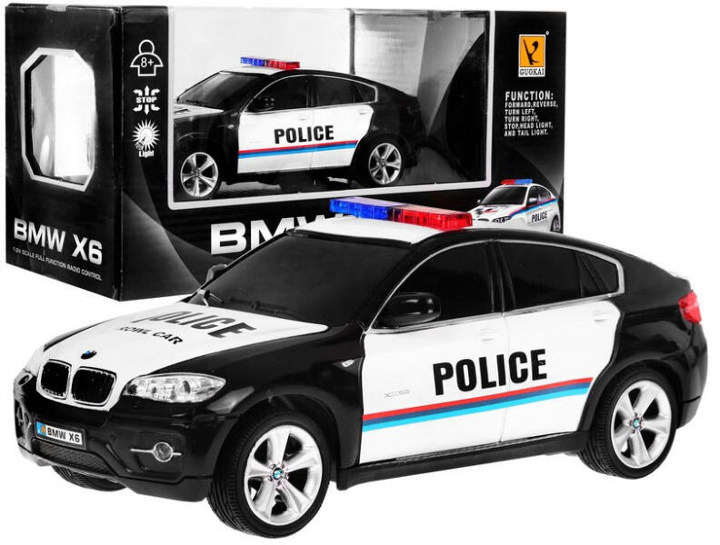 Az 1:24 méretarányú BMW X6 távirányítós rendőrautó garantáltan szórakoztat minden autókedvelőt. A jármű nagyon stílusos, gumi kerekekkel rendelkezik, és dinamikus vezetést biztosít, ami nagyon realisztikussá teszi ezt a játékot a gyerekek számára. Az első és a hátsó lámpák vonzóvá teszik a rendőrautót. A kiváló minőségű műanyag, amelyből az autó készült,