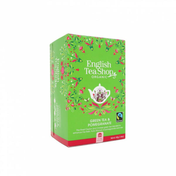 Bio és fairtrade mínősítésű zöld tea, természetes gránátalma ízesítéssel 100% újrahasznosítható csomagolásban. A zöld tea egészségvédő és immunerősítő tea, gazdag vitamin és ásványi anyagtatartalma miatt rendszeres fogyasztása ajánlott. A fekete teával ellentétben a zöld teát nem erjesztik. A frissen betakarított tealeveleket gőzölni kezdik, ezzel az eljárás