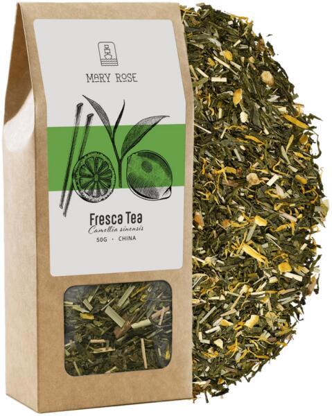 A Mary Rose Fresca egy nagyon ízletes, gyönyörűen illatos és ropogós sencha zöld tea kombinációja gyógynövényes és gyümölcsös kiegészítésekkel: citrusokkal átszőtt citromfű , frissítő menta , citromhéj , lime-héj és körömvirá g szirmok . A főzet nem csak a hideg napokon melegít. A megfelelő tea- és gyógynövénykeverékek forró időben is frissítőek lehetnek.