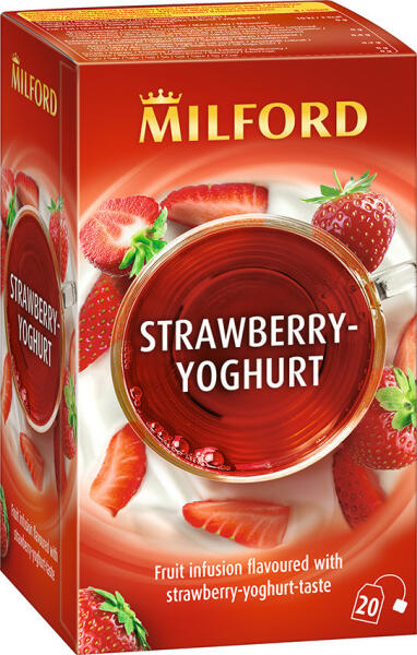 Milford eper-joghurt ízű gyümölcstea 20x2,5g 50 g Eper-Joghurt ízu gyümölcstea · 20 db filter Összetevők: alma, hibiszkusz, aroma (joghurt, eper), csipkebogyó, eper, joghurt granulátum