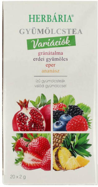 Kortyolj valódi gyümölccsel készült teát! Pazar ízek – gránátalma, erdei gyümölcs, eper és ananász. Herbária Gyümölcstea Variációk: természetes zamat minden kortyban!