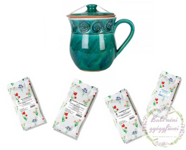 Az ajándékcsomag tartalma: Porcelán teásbögre, amit nem csak a gyógytea szerelmesei fognak imádni. A bögre minden teakedvelőnek tetszeni fog. A szűrő és a fedő lehetővé teszi, hogy a teája megfelelően feloldódjon és hosszú ideig meleg legyen. (A bögre különböző mintájú és színű lehet, a kép illusztráció. ) Űrtartalom: 500ml Két csomag szálas tea, melyet Ön vál