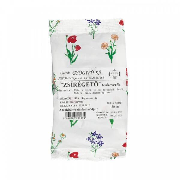 Összetétel: zöldtea, Coleus forskohlii levél, nyírfalevél, rozmaring Megfelelő étrend mellett segíti a fogyókúrát, megkönnyíti a zsírok lebontását, gátolja a lerakódását, méregtelenít. Javasolt 2-3 csésze forrázat naponta 50 g