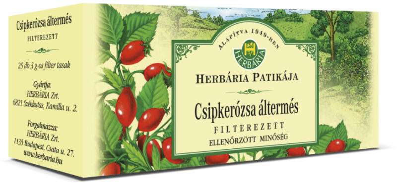 Alkalmazható meghűléses megbetegedések kiegészítő kezelésére Csipkerózsa áltermés -hús (Rosae pseudo-fructus) filteres Rövid leírás: Alkalmazható meghűléses megbetegedések kiegészítő kezelésére Alkalmazási javaslat: A csészébe helyezett 1 db filter tasakot / 1 evőkanál (2 g) drogot 1,5 dl hideg vagy langyos vízben áztatjuk néhány órán keresztül, majd ízesítve
