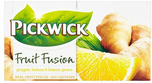 Pickwick Fruit Fusion tea gyömbérrel és citrommal citromfűvel 20x2g Ízesített gyümölcs- és gyógytea. Hozzávalók: Almapép, gyömbér (20%), citromfű (19%). Cikória, Sav (citromsav), édesgyökér. Édes szederlevél, Aroma, citromgyümölcs (0,5%). Narancssárga gyümölcsök.
