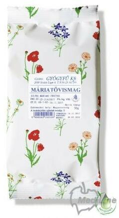 Silybi Mariani Fructus "A szakirodalom szerint sikeresen alkalmazták májbetegségek kezelésére, így az alkohol okozta- és vírusos májkárosodás, a kemoterápia okozta májproblémák, valamint a gyilkos galóca mérgezés terápiájában. A növény jelentős méregtelenítő hatással bír. 50g