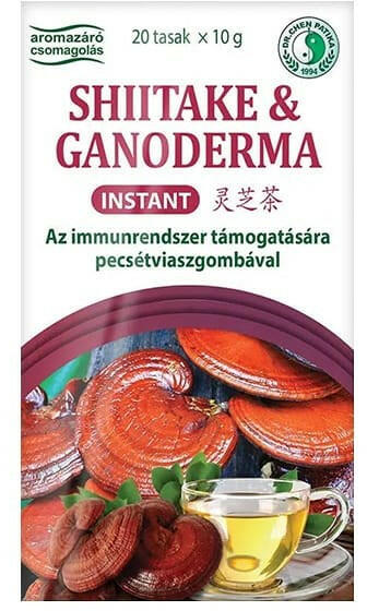 Herbatea instant DR CHEN Shiitake-Ganoderma 20 filter/doboz A ganoderma gomba (reishi) támogatja a szervezet természetes védekező képességét, a keringési rendszer egészségét, hozzájárul a normál koleszterintszint fenntartásához. Az inulin természetes eredetű vízben oldható rost. Adagolás: naponta 2x1 tasak granulátum elfogyasztása javasolt. Felhasználási javaslat: egy tasa