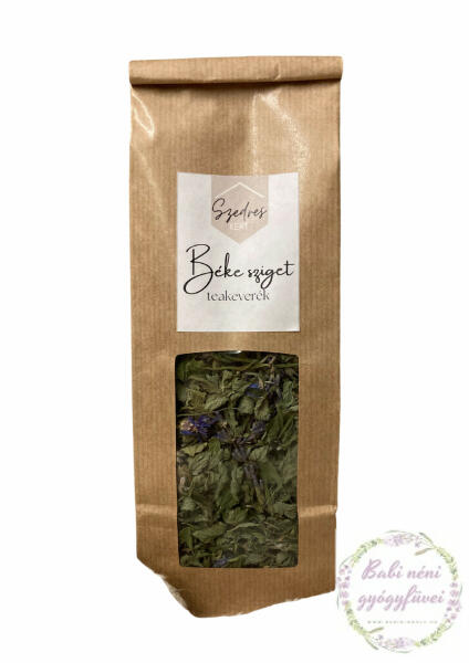 BÉKE SZIGET TEAKEVERÉK: Élvezeti teaként, esti, délutáni teaként fogyasztható. A macskamenta csodás illata karakteres ízt ad ennek a teának, a benne lévő gyógynövények segítenek a pihenésben, stressz oldásában. Mindennapi használatra ajánlott. Összetevők: macskamenta, citromfű, izsóp, levendulavirág, búzavirágszirom