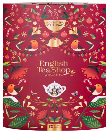 A könyvformátumú tea adventi naptár 24 különböző teával mesél el egy különösen finom karácsonyi történetet. Az adventi naptár könyvként kinyitható, és egyenként becsomagolt teás tasakokat tartalmaz az English Tea Shop legnépszerűbb bioteáival, valamint különösen karácsonyi fajtákkal. Összetevők: 1. English Breakfast: fekete tea* (100%), 2. Fehér tea Áfonya Bodza: