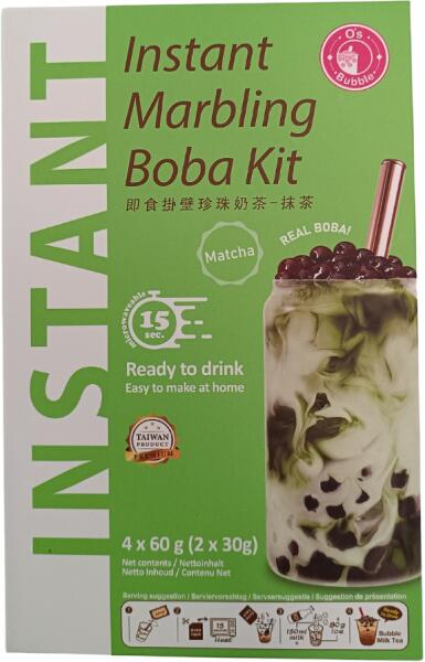 BUBBLE TEA BOBA MATCHAKiszerelés: 240 gTaiwan-i bubble tea tápióka gyöngyökkel, matcha ízesítéssel és papírszívószállal. A csomag 4 darab bubble teát tartalmaz. Elkészítési idő: kevesebb, mint 1 percElkészítés: Tegye a 30 gramm szirupot egy pohárba, vagy bögrébe. Vágja ki a tápióka gyöngyös tasakot a sarkánál, majd tegye be a mikróba 15 másodpercre, majd öntsük b