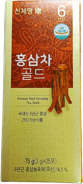 KOREAI VÖRÖS GINSENG TEAKiszerelés: 75 gA csomag 25 darab tasakot (3g) tartalmaz. Összetevők: Koreai vörös ginseng gyökér kivonat, glükóz, laktóz, jujube kivonat, L-aszkorbinsav. Napi ajánlott mennyiség: felnőttek számára 1 tasak (3g) napi 1-3 szor egy pohár meleg vagy hideg vízben elkeverve. A koreai vörös ginzeng javítja az agy teljesítményét, a szellemi és fizikai telj