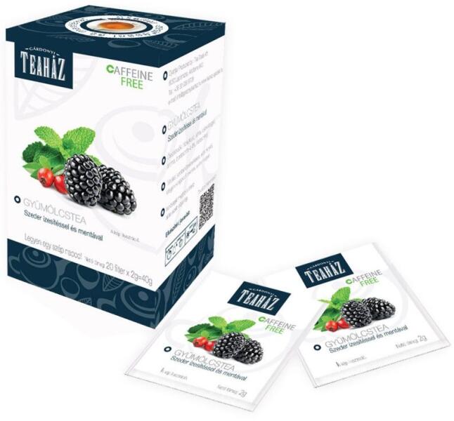 A Gárdonyi Teaház prémium gyümölcsteája szeder és menta harmonikus kombinációjával kényezteti az ízlelőbimbókat. A 20 filteres kiszerelésben kapható tea telt gyümölcsös íze és frissítő mentás aromája melegen és hidegen egyaránt élvezetes.