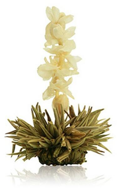 RAKTÁRRÓL AZONNAL! Virágzó fehér teagolyó jázminvirágokkal, csomagolva (kancsó méret, kb. 0.5 liter) Összetétel: fehér tea (95%) jázminvirág (5%) ELKÉSZÍTÉSI JAVASLAT A virágzó tea különleges élményt kínál a teakedvelőknek. A gömb belseje egy egzotikus virág, azonban a titka csak akkor nyílik meg, amikor a golyót forró vízbe dobják. A labdából az infúziós idő
