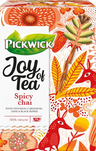 Pickwick Joy of Tea fűszeres chai 15 x 1,75 g Hagyja magát meglepni a fahéj, kardamom, ánizs és szegfűszeg meleg keverékével. A gyömbér és egy csipetnyi fekete bors kellemesen fűszeres ízt ad a teának. Hozzávalók: Rooibos (49%)*, gyömbér (15%), fahéj (10%). Cikória, természetes aromák, szegfűszeg (5%). Ánizs (3%), kardamom (1%), fekete bors (1%). *50% Rainforest Alliance ta