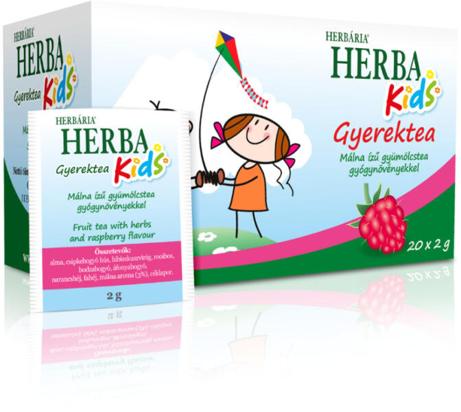 Herba Kids Málna ízű gyümölcstea gyógynövényekkel Herba Kids Málna ízű gyümölcstea gyógynövényekkel Összetevők: alma, csipkebogyóhús, hibiszkuszvirág, rooibos, bodzabogyó, áfonyabogyó, narancshéj, fahéj, málna aroma (3%), céklapor. Fekete teát nem tartalmaz. Tárolás: száraz, tiszta, hűvös helyen. Nettó tömeg: 40 g Kiszerelés: 20 filter / doboz Gyártja: HERBÁR