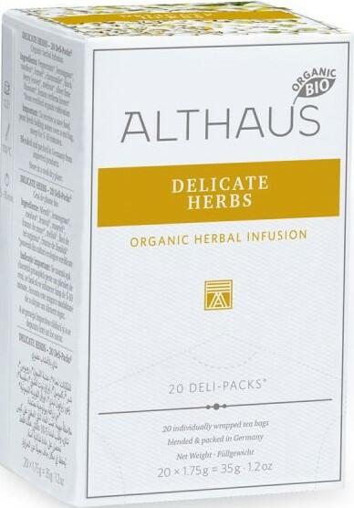 Althaus Delicate Herbs gyógytea 35g Ez a természetes bio gyógytea könnyű édesköményével finom. Az EU-ban készült.