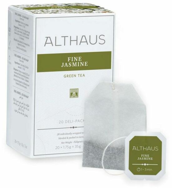 Az Alhaus Fine Jasmine tea a csészébe felejthetetlen ízt varázsol, valamint a jázminvirágok frissítő, testes illatát, amelyhez világoszöld szín társul. A legjobb módszer ennek a teának az elkészítésére 75-85°C hőmérsékletű vízzel leönteni a tea leveleket, majd azokat 2–3 percig állni hagyni. Összetevők: zöld tea, jázminszirmok. Az althaus te a legjobb minőségi v