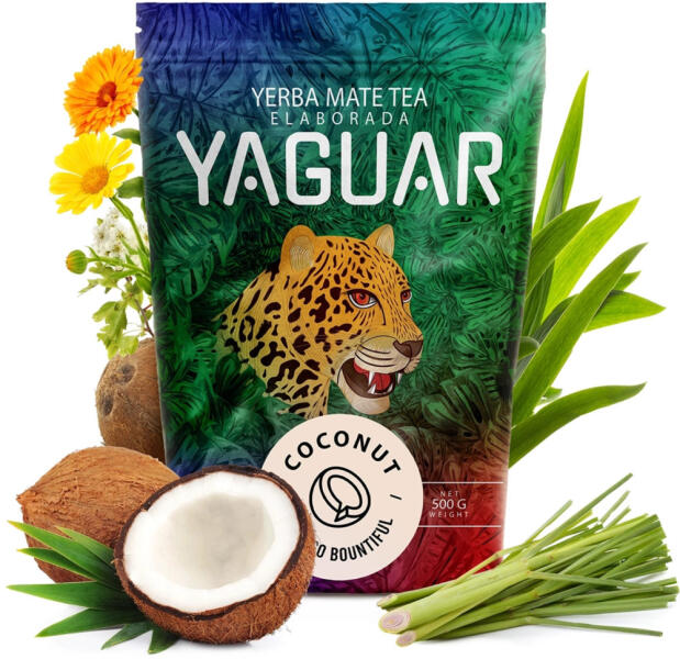 A Yaguar Coconut, ahogy a neve is sugallja, egy intenzív kókusz ízű yerba mate. Azonnal megérzed a csábító, egzotikus kókusz aromát, amint kinyitod a csomagot. Igazi ínycsiklandó élmény! Összetevők: 87,15% yerba mate, 8% kókuszdarabok, körömvirág szirmok, citromfű, galagonya virágok, kókusz aroma. Yaguar Coconut – Kókuszos Yerba Mate kiválóság A Yaguar egy prémium yer