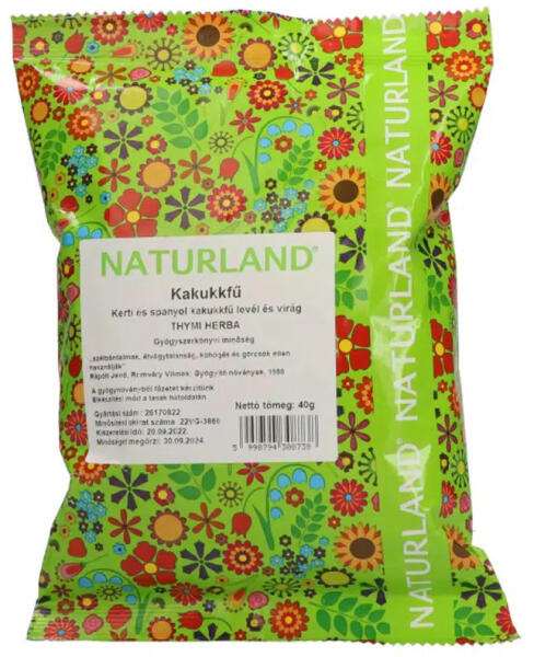 Naturland Kerti Kakukkfű Tea 40 g A Naturland Kerti kakukkfű tea hasznos lehet a gyulladások enyhítésében, például a torokfájás vagy a légzőszervi megbetegedések esetén. A kerti kakukkfű teát szélbántalmak, étvágytalanság, köhögés és görcsök ellen használják. Gyulladáscsökkentő, fertőtlenítő, baktérium- és gombaellenes hatású gyógynövény. Oldja a légző-