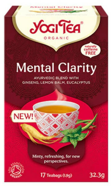 YOGI TEA® Mental Clarity ajurvédikus gyógynövény- és fűszerkeverék tea azok számára, akiknek szükségük van az elme frissen tartására. Vannak napok, amikor nehezebb a koncentráció, ilyenkor a legjobb megoldás egy kis szünetet beiktatni egy finom csésze teával. Ez az ízletes teakeverék ginsenggel, eukaliptusszal és friss mentával egy pillanatnyi szünetet nyújt, hogy felfri