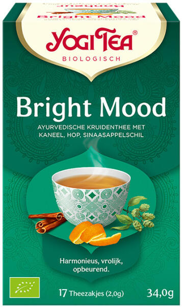 Bright mood - Ragyogó hangulat Biotermék. Ajurvédikus gyógynövény- és fűszerkeverék fahéjjal , komlóval és narancshéjjal . Glutén- és laktózmentes, vegán. Nem tartalmaz koffeint. Összetevők: fahéj* (17%), gyömbér*, édeskömény*, édesgyökér*, ánizs*, kardamom*, narancshéj* (3%), komló* (3%), bazsalikom*, narancsolaj*, fekete bors*, levendulavirág *, görögszéna*, ci