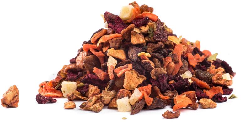 A vörös színű főzetet különösen a bogyós gyümölcsök kedvelőinek ajánljuk. Teint, koffeint nem tartalmaz, ezért késő este is bátran fogyasztható. A hibiszkusz, csipkebogyó, alma, eper, málna, őszibarack, narancs és fahéj íze brilliánsan harmonikus kompozíciót alkot.