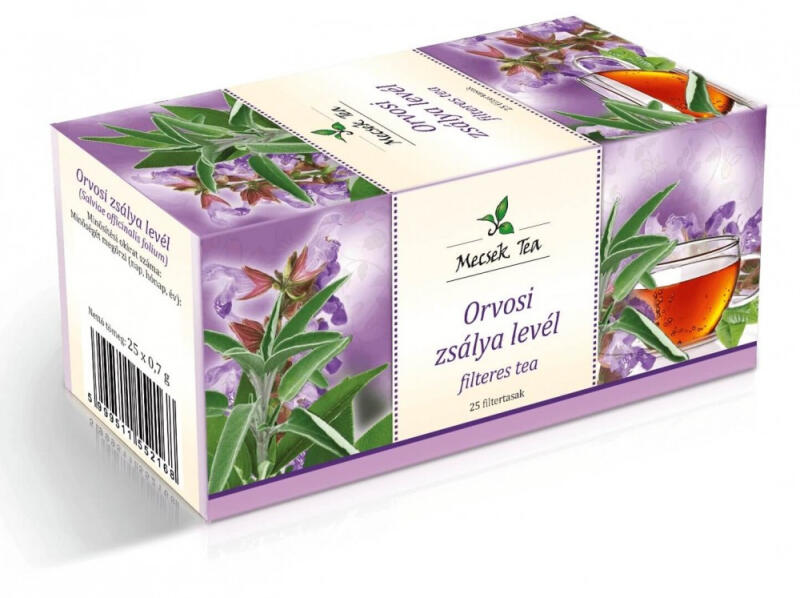 MECSEK Orvosi zsálya levél tea 25 filteres Enyhén összehúzó, fertőtlenítő. Csillapítja a hasmenést, a túlzott izzadást, külsőleg a szájüreg- és garatgyulladást. A tea koffeint, tartósítószert és aromaanyagokat nem tartalmaz. Kiszerelés: 25 x 0,7 g Leírás: Enyhén összehúzó, fertőtlenítő. Csillapítja a hasmenést, a túlzott izzadást, külsőleg a szájüreg- és g