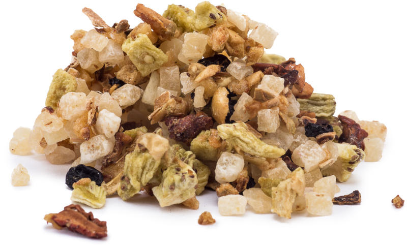 Rooibos Alma-Karamell tea összetevők: rooibos (52%), almatörköly (16%), édes feketeszeder levél, fahéj, étkezési sav: almasav, karamell aroma (3%), természetes aroma 3% (alma-fahéj), cseresznye aroma (EU) Rooibos – Sütőtök tea összetevők: rooibos (79%), gyömbér, szegfűszeg, sütőtök aroma (3%), stevia levél, természetes aroma, kardamom (EU) Rooibos tea összetevők: rooibo