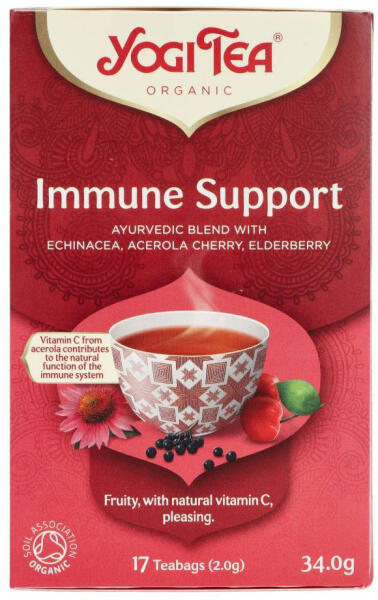 Ajurvédikus gyógynövény-, gyümölcs- és fűszerkeverék természetes C-vitaminnal, echinaceával, acerola cseresznyével és fekete bodzával. Gluténmentes és laktózmentes, vegán termék, ellenőrzött ökológiai gazdaságból származó alapanyagokkal.