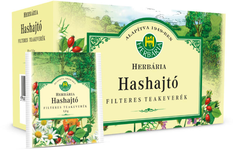 A teakeverék alkotórészei hashajtó, szélhajtó és bélgörcsoldó hatásúak Herbária Hashajtó filteres teakeverék Összetevők: fekete bodza virág (Sambuci flos), kutyabengekéreg (Frangulae cortex), közönséges cickafark virágos hajtás (Millefolii herba), benedekfű (Cardui benedicti herba), keserű édeskömény termés (Foeniculi amari fructus) Alkalmazási javaslat: 1 db filter