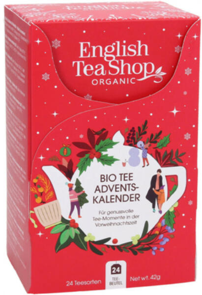 Adventi kalendárium filteres bio teaválogatás 13 féle ízzel Netto súly: 37,5 g 2 x Gingerbread Treat : Összetevők : fekete tea* (53%), fahéj* (20%), gyömbér* (15%), alma*(6%), természetes gyömbérízesítés (2%), természetes fahéjízesítés(2%), cardamom*(1%), természetes citrom ízesítés(1%). (Áztatási idő: 4-5perc) 2 x Ghostly Green : Összetevők : Zöld tea* (74%), fahé